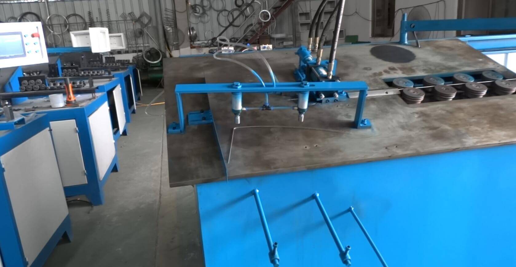 進(jìn)線工位及折彎頭之間的距離是可調(diào)節(jié)的,因此,它能夠處理在線材直徑較小的情況下的重要卷繞工序,也能完成需大型空間的折彎工作。